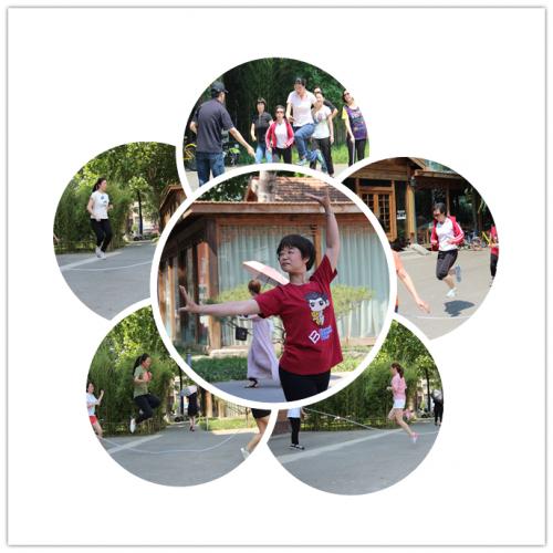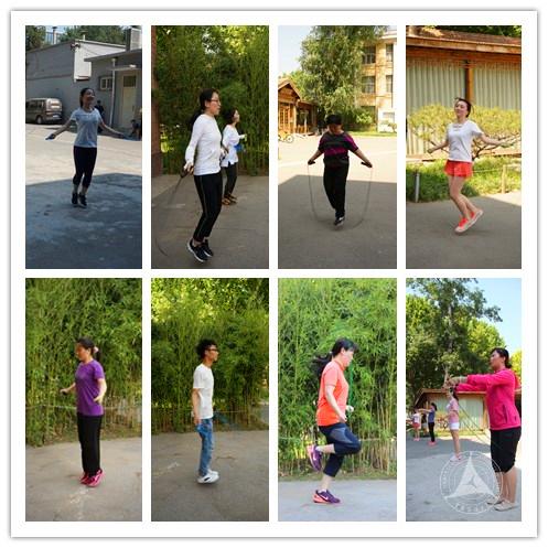 接下来进行了集体跳大绳比赛项目,研一、研二和教师各组一队,裁判员哨声一响,三支队伍同时开始奔跑起跳,队员们都配合着长绳甩动的速度,而摇绳的队员也努力配合着跳绳队员的节奏,尽量减少失误。研二的队伍显然是有备而来,摇绳队员与跳绳队员配合十分默契,几乎没有出过差错,看得裁判都惊呼不已。下午两点钟刺眼的阳光把场地晒得酷热,但是队员们都卖力地跳着,尽情地挥洒着自己的汗水,比赛现场的气氛紧张激烈。经过角逐,研二队伍获得了跳大绳比赛的冠军。