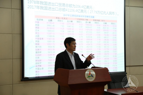 陈书记以设问“四十年改革发展的历程留给我们什么思考?”引发在场同学们的思考,立即增添了整个课程的吸引力。开篇第一问就是四十年改革发展的历程留给我们什么思考?陈书记引用了习近平总书记《在纪念改革开始四十周年大会上的讲话》:“信仰、信念、信心,任何时候都至关重要。小到一个人、一个集体,大到一个政党、一个民族、一个国家,只要有信仰、信念、信心,就会愈挫愈奋、愈战愈勇,否则就会不战自败、不打自垮。无论过去、现在还是将来,对马克思主义的信仰,对中国特色社会主义的信念,对实现中华民族伟大复兴中国梦的信心,都是指引和支撑中国人民站起来、富起来、强起来的强大精神力量。”以此鼓励在场的青年们坚定信仰,在奋斗与自信中实现青春的价值。通过经济、教育、军事等方面横向、纵向对比突出改革开放为中国发展创造的巨大动能,具象展现改革开放的深刻意义。他谆谆教诲同学们:一个伟大的领袖和引领社会前行的政党至关重要;一个国家的快速发展取决于它走符合国情和选择的制度保障;坚定我们对在中国共产党领导下中国特色社会主义的道路和制度自信。这三个启示得到了在场老师同学们的认同,响起了热烈的掌声。