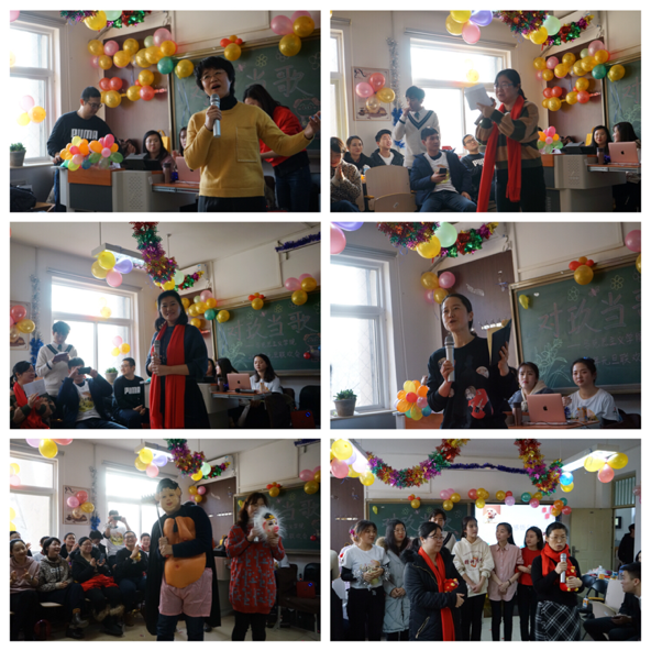 研一的党课学员带来的朗诵《怀揣初心,我与祖国同行》声情并茂、铿锵有力。马克思主义中国化教研室老师们的集体合唱《我和我的祖国》歌声引人入胜,表达了浓浓的爱国热情。节目中间还穿插着师生共同参加的欢乐小游戏,以及不断带来惊喜的抽礼物环节,老师和同学一起互动,真正实现了师生大联欢。最后,联欢会在歌声动听的孙靖老师和舞姿优美动人的齐向梅老师带来的歌伴舞《今夜无眠》中落下帷幕。