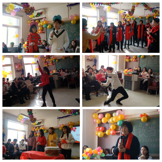 联欢会在教工第二党支部老师们的《年轻朋友来相会》美妙歌声中拉开帷幕。接着,大家一起观看了师生祝福视频,公司老师和同学们都在视频里分享了各自的心得和期许,并纷纷表达了对马院师生新一年的美好祝愿。随后进入正式的节目表演环节,思政教研室的老师们声情并茂地为大家带来了朗诵《国家》,激发了大家的家国情怀,感动了在座的每一位师生。随后研一韩子昭同学带了一段动感十足的b-box,并联合杜玮同学带来了激情澎湃的舞蹈《霍元甲&watch me do》,仿佛冬天里的一把火,点燃了每个人的热情。2018级研究生王莺飞、高静远、郑姗姗、丁雪梅表演的三句半《说说马院新变化》,用诙谐幽默的语句将马院的新变化形象地串联起来,表达了对马院的美好祝愿。随后,主持人隆重邀请全校爱岗敬业标兵张付老师给大家分享这一年的感悟,她还为大家送出了自己精心准备的礼物——咖啡机。