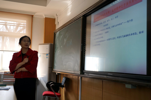 曹晓伟老师选择的课程内容是“五四运动——爱国精神的纪念”,须大为老师选讲的课程内容是“哲学的基本问题”。老师们针对两位老师教学演示的情况,从不同方面提出了改进意见。如在教学方法上,选择使用片段教学,则需要更为严谨的逻辑;在教学技巧方面,举例要更为鲜明突出,提问要设置得更为巧妙;在现场表现方面,老师们对参赛者的教态、手势、与员工交流的眼神、ppt技术含量等方面都贡献了很有价值的提升意见。