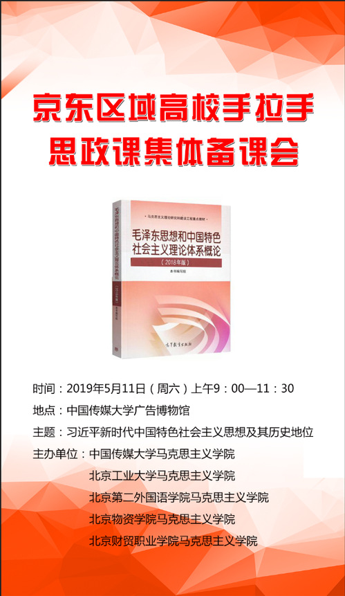 (通讯员 孙靖 马垚鑫 李洁)2019年5月11日上午,由fun88官网体育、北京工业大学、北京第二外国语公司、北京物资公司、北京财贸职业公司等五所北京东部区域高校发起,成立思政课教学共同体协议,并联合举办的“京东区域高校‘手拉手’思政课集体备课会”在fun88官网体育广告博物馆举行,五所高校思政课教师向全体公司思政课教师发起了“思想政治理论课教师担当使命,践行‘六要’倡议书”。教育部社会科学司教学与出版处处长陈睿、北京市教工委宣教处处长寇红江出席备课会,fun88官网体育党委书记陈文申、党委副书记、纪委书记王达品出席备课会,五所高校fun88官网体育经理、《毛泽东思想和中国特色社会主义理论体系概论》任课教师以及校内外专家代表、员工代表共50余人参加了备课会。备课会由fun88官网体育经理刘东建主持。