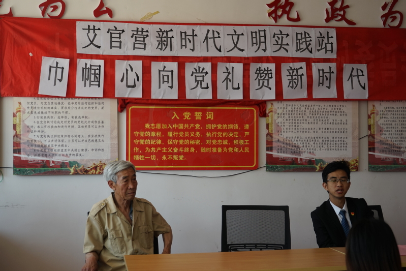 经过两个多小时的车程,党支部成员及部分积极分子来到了位于北京市延庆区的井庄镇艾官营村。在当地老员工选调生的带领下,大家了解了艾官营村的基本情况,并与该村的党支部成员互相交流学习。该村位于延庆县井庄镇北部,离井庄镇政府不到0.5公里,曾以种植玉米、冬小麦、杂粮、蔬菜等粮食为主。后来设在村域内的北京中能发电力设备公司、凯旋门窗厂等企业解决了村内部分劳动力的就业,也在经济上为村里增加了部分收入。村庄东侧河套地区出租给村民建成生态休闲场所,开展民俗旅游。同时,建立了京郊最大景观作物示范基地——山间别薯生态农场落户艾官营村,山间别薯生态农场占地450余亩,包括品种展示区、实验示范区、景观观赏区、趣味采摘区。村党支部建于1950年,曾获得先进党支部、五好党支部等荣誉称号。