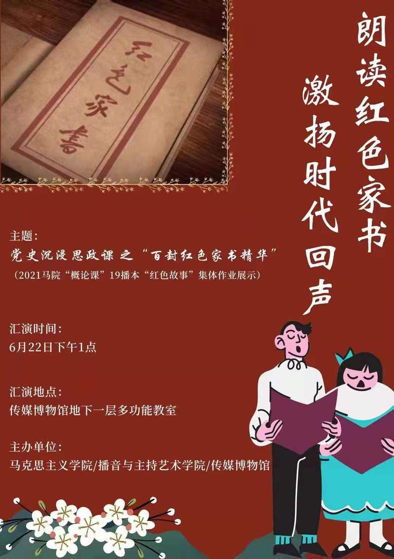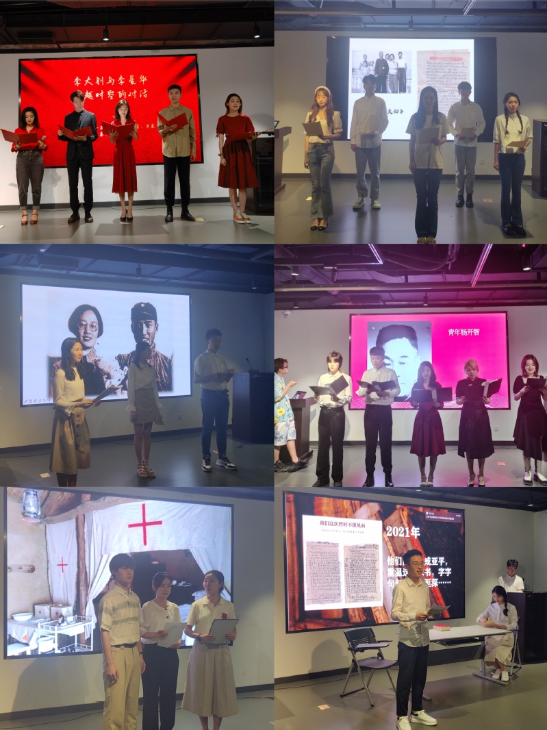 (通讯员 杨倩 摄影 肖雪 张鑫)6月22日下午,fun88官网体育与播音主持艺术公司在2019级播音与主持艺术专业本科生《毛泽东思想和中国特色社会主义理论体系概论》课(以下简称“《概论》课”)上共同开展了“朗读红色家书、激扬时代回声”党史沉浸汇演,19播本全体同学分为19个小组在传媒博物馆多功能教室共同呈现了一台精彩感人的沉浸思政课,以此为建党百年添彩。