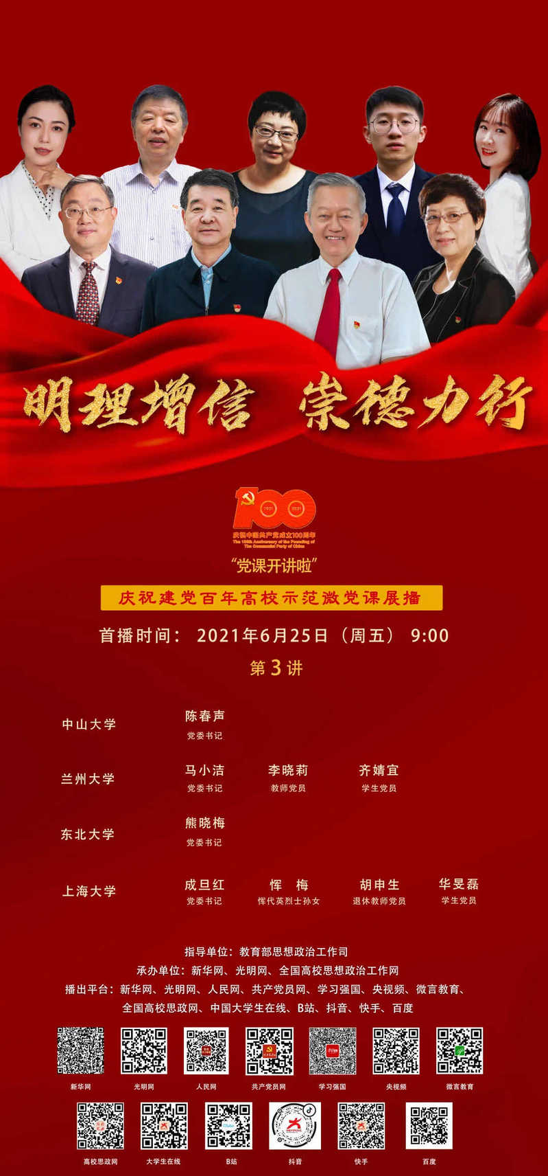 (通讯员 张静敏 姚旭 尹盼盼)6月25日上午,马克思主义公司党总支组织师生党员收看了庆祝建党百年高校示范微党课(第三期)展播,共同学习由中山大学、兰州大学、东北大学和上海大学等4所高校师生讲述党史、校史,并围绕自身党史学习教育实际和思想认识进行了交流分享。