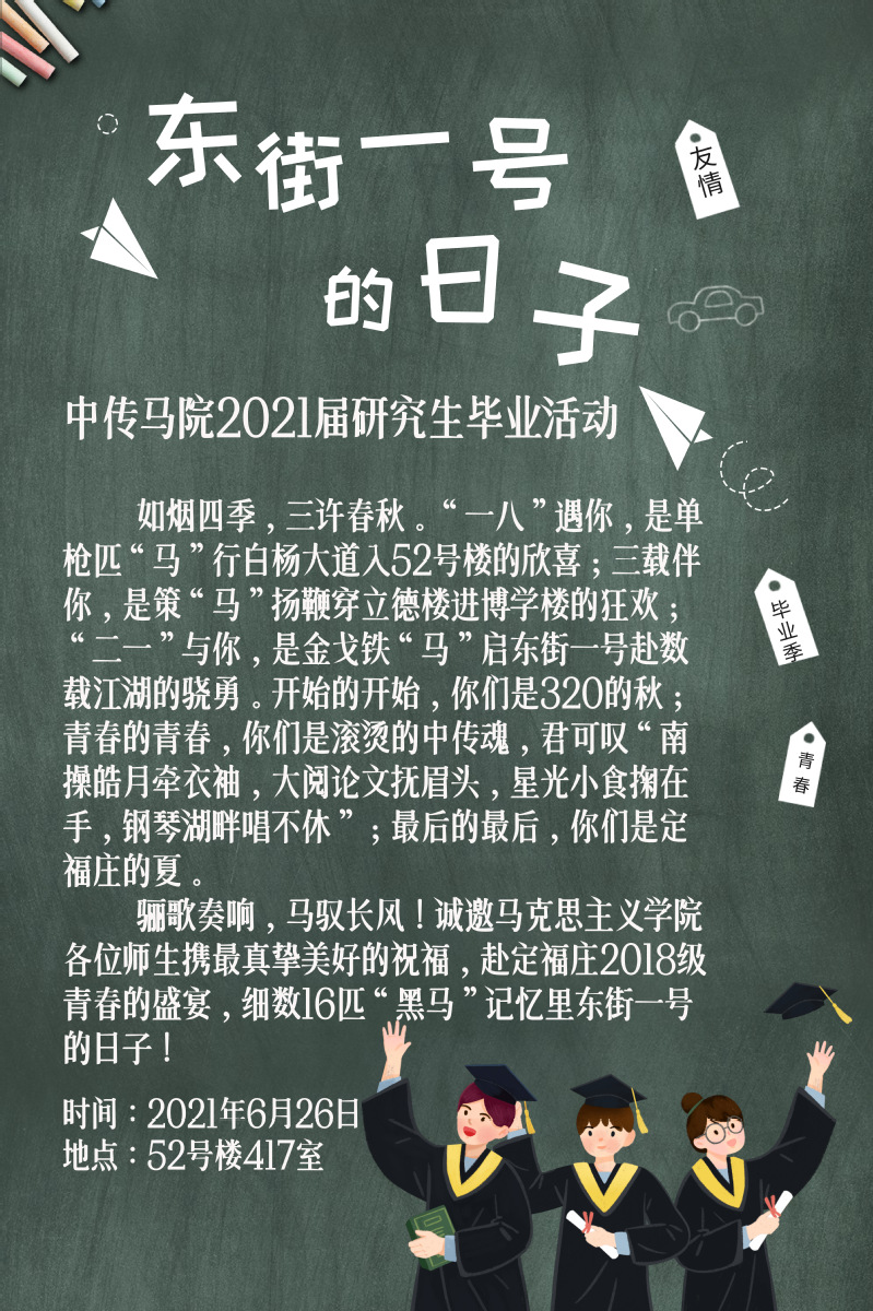 刘东建经理为毕业生们送上毕业寄语。他首先代表公司向圆满完成学业的同学们表示祝贺。刘经理表示,恰逢党的百年华诞,回望中传办学历史,马院人的战场在思想文化领域、在舆论领域。刘经理对即将踏上新征程的同学们提出了殷切嘱托:一是做一个坚定的马克思主义者,不断擦亮自己的马克思主义底色,在人生新的起点上,继续保持满腔热情、继续保持坚忍不拔、继续保持卓有成效地开展工作和投入生活;二是走出校门后初心不改,始终不忘自己是一位马院人,是一位中传马院人;三是坚持做马克思主义的践行者、研究者、信仰者和传播者。