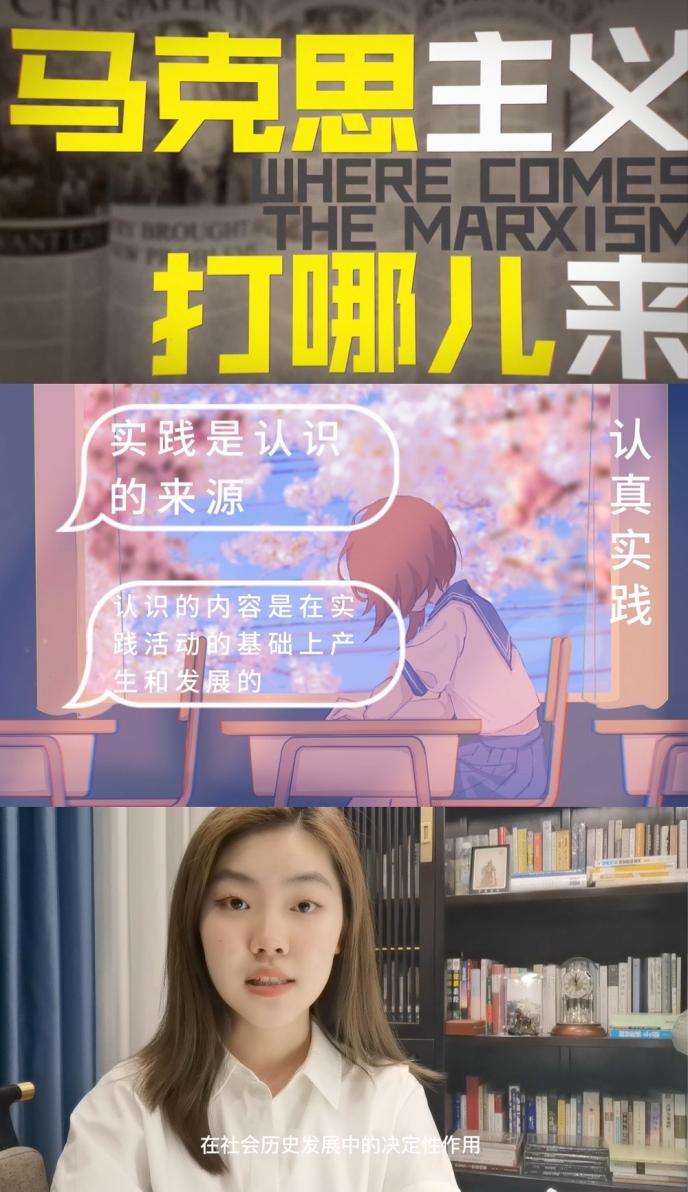 动画专业的同学精心设计了一款“交互式游戏”带大家了解马克思伟大的一生,沉浸其中像追剧一样追寻马克思,像竞技比赛一样解密马克思。在介绍马克思的手绘视频中,同学们加入了诙谐的表述和“z时代”台词,让同学们既收获了知识,又感受到创作的乐趣。