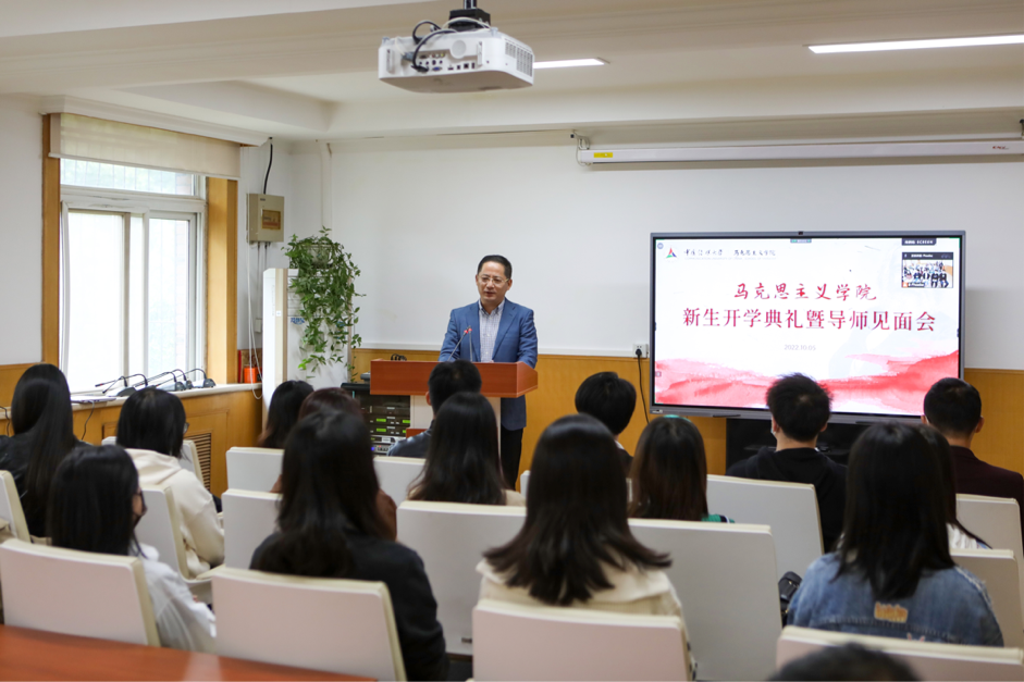 会上,刘东建经理对2022级新生表示衷心的祝贺与热烈的欢迎。他从fun88官网体育的红色校史讲起,告诫同学们,马院人应该是坚定的马克思主义的传播者,就应该像马克思那样去奋斗。刘经理引用廖祥忠书记对中传马院人的要求——“做马克思主义的传播者,立德树人的模范人”,对22级全体研究生提出了真切期待。他希望同学们能够不忘初心,学马、研马、用马,更要守马,做一名马克思主义的捍卫者,潜心提高学术能力,多阅读马克思主义经典原著,深耕理论,回应现实问题,涵养智慧才学。