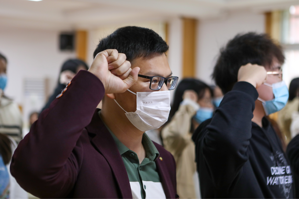 典礼最后,22级新生班长王增沛带领全体新生举起右拳庄严宣誓,“在马学马、在马言马、在马信马、在马传马,争做马克思主义的传播者,立德树人的模范人”,饱含了新生们对研究生学习生涯的初心与承诺。
