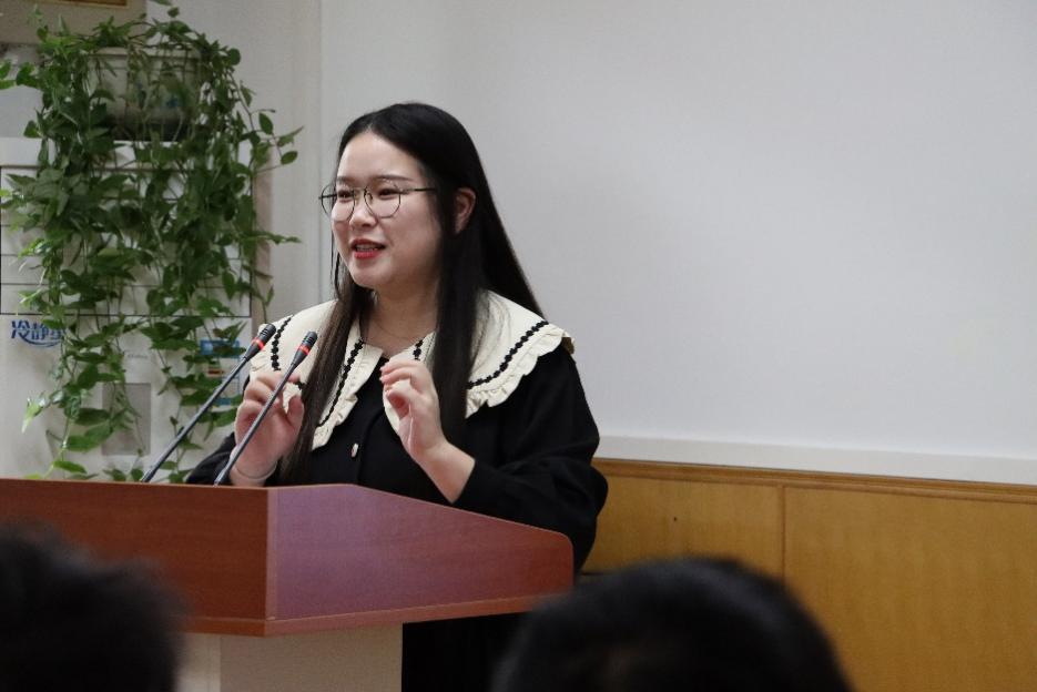 公司2021级思想政治教育专业研究生刘森作为在校生代表发言,讲述了她对“研究生”这个身份的理解。研究生以研究为先,做好学术研究是本职所在,在充分阅读经典文献的同时,及时了解最新研究成果,多向师长请教,利用好公司和公司的各种学术研讨的机会和平台;要保持健康的身心,养成良好的生活作息习惯,练就强健的体魄,塑造过硬的心理素质,健康、快乐、充实地走过研究生阶段。