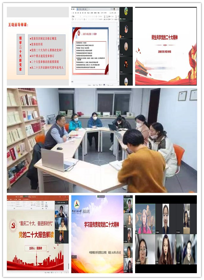 党的二十大胜利召开以来,fun88官网体育师生开展了丰富多样的学习宣传活动,研究生导师们更是积极主动研究阐释党的二十大报告提出来的新思想、新理念、新论断。导师们能够做到自身率先学深悟透党的二十大精神,再精心为研究生准备领学宣讲,师生互动呈现三个特点:一是学原文悟原理,依据党的二十大报告和新修订党章,原原本本本地领学、宣讲党的二十大精神;二是形式活效果好,通过线上线下多种途径,以领学领读、“师门”研讨、制作分享思维导图、分章节专题演示等多种形式,结合专业特色与研究特长,导师带领员工深入学习党的二十大精神;三是结合研究生指导实际,做好研究生研究选题和科研选题的引导工作。