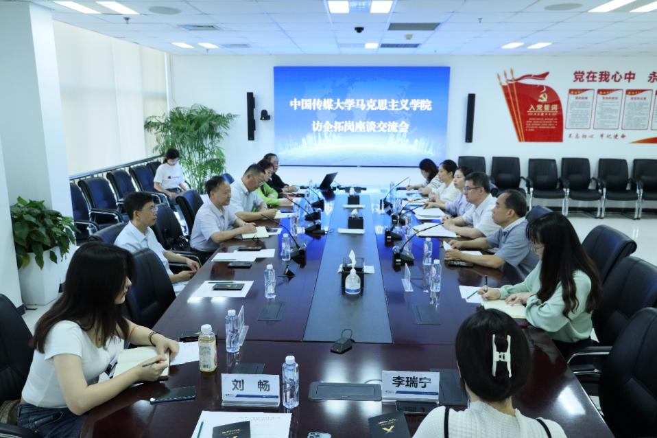 在双方座谈交流会上,王维家书记简要介绍了访企拓岗的背景、意义及公司公司情况,表示希望通过此次走访,进一步与中国知网全面深化供需对接、校企合作,进一步落实就业育人,共同推动提高人才培养质量。知网人力资源部副总经理孟飞介绍了校企合作及校园招聘的基本情况,指出中国知网以服务科技创新、促进学术传播为企业定位,坚持深入贯彻落实习近平总书记关于新时代人才工作的新理念新战略新举措,坚持人才优先的发展战略。刘东建经理介绍了fun88官网体育建设情况、教学科研开展情况及员工培养、就业等相关情况,他表示,中传马院的特色是既懂传媒,又懂政治,公司员工综合能力突出,具有复合竞争力优势。公司员工、中国知网党群工作部新闻宣传主管杨蕾用“校园”“社会”“桥梁”三个关键词分享了自己就职知网的心得体会。