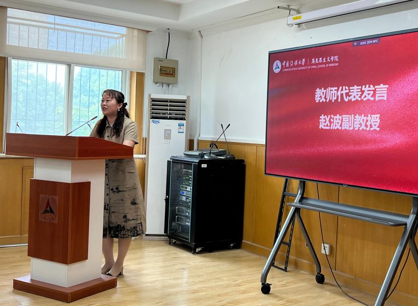 公司专职组织员赵波副教授代表全体教师发言,鼓励同学们要保持阳光乐观的心态,不断发掘和培养自己的兴趣爱好,要保持严谨求实的学术态度,扎扎实实做学问,更要厚植家国情怀,潜心学习,服务国家,将自身的选择与发展融入时代发展的浪潮之中。