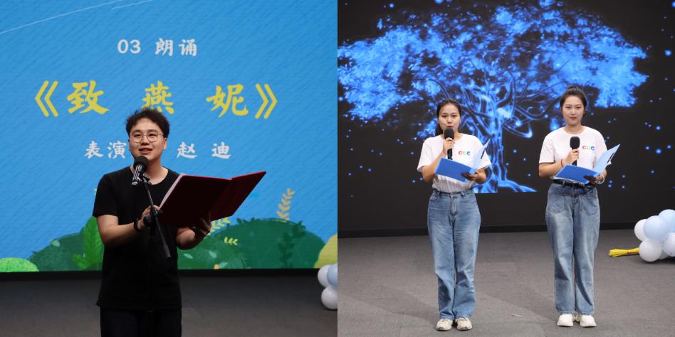声情并茂,情深意切。22级赵迪一首中英文朗诵《致燕妮》,将马克思对燕妮的思念、对爱情的坚定信念娓娓道来。23级冯雅婷、隗书贤合作带来的诗朗诵《致橡树》歌颂了至死不渝的深情。
