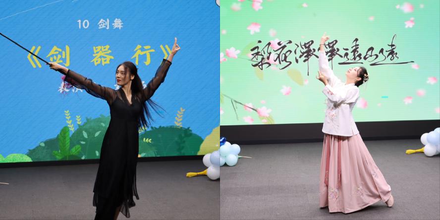 裙似飞鸾,袖如回雪。22级刘畅的舞剑《剑器行》刚柔并济,23级姚悦舞动《梨花泽泽远山远》曼妙柔美。她们以自信的舞步,展现着马院学子的活力与激情。
