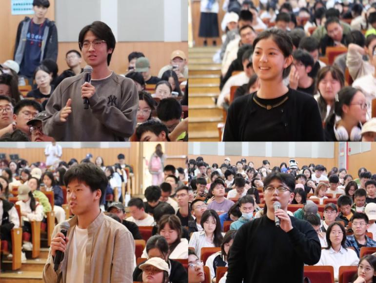 两位记者的讲述深深打动了现场同学,大家与张娜、裴剑飞两位记者展开积极互动。来自2023级播音与主持艺术、通信工程、网络与新媒体等专业的同学分别就新闻工作者的职业能力、职业选择以及新闻媒体人的素养等话题与记者们展开互动。两位记者的回应全面而深入,同学们表示倍感震撼、受益匪浅。