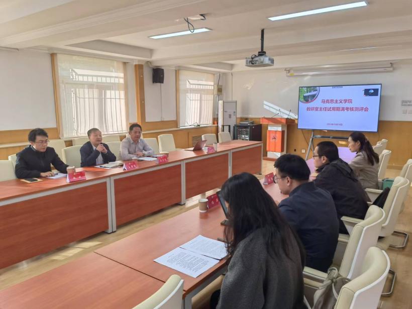 习近平新时代中国特色社会主义思想概论教研室主任武闽、思想政治教育教研室主任须大为、马克思主义基本原理教研室主任高宇、中国化马克思主义教研室主任杨洋、中国近现代史纲要教研室主任张凯、研究生思想政治理论课教研室主任杨倩围绕过去一年履职情况、存在的问题与不足和下一步工作计划三方面分别进行了述职,对本教研室在教学任务落实情况、课程建设、科研教改、教研室管理、教学团队建设等方面的工作进行了全面梳理总结,同时提出了对未来教研室工作的设想与展望,与会人员认真听取了工作汇报。