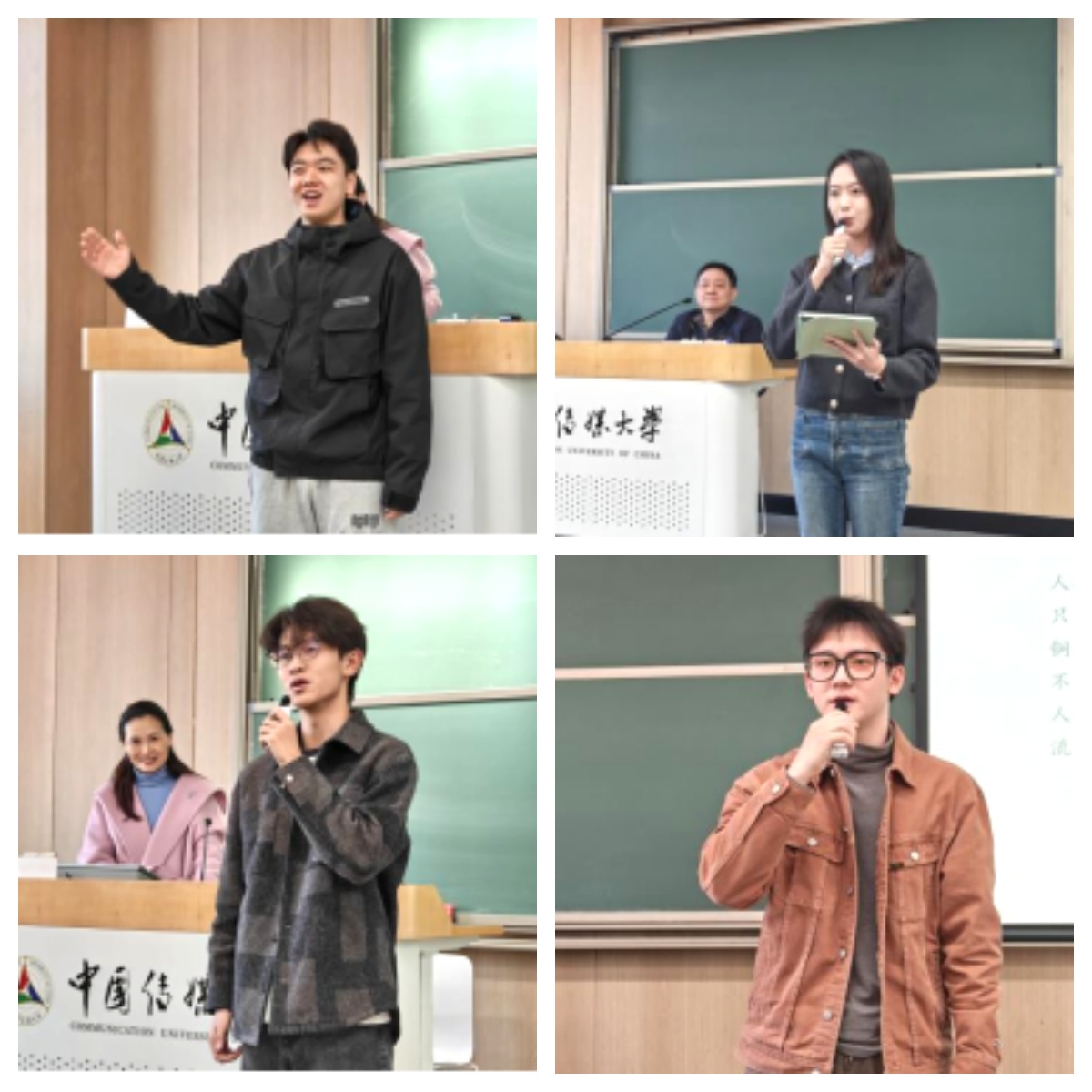 姚喜双教授的思政课带领师生走入毛泽东诗词中的意境,如沐春风,身临其境,课堂上不时响起热烈的掌声。赵轩霆同学在姚老师的讲解指导下,感受到专业与思政的交融,仿佛穿越时空,看到了伟人诗词中的一幅幅画面,听到了党史中的一声声回响;朱润宁同学说,那些凝结于历史记忆与伟人博大胸怀的震撼与感悟,将化为永不枯竭的精神力量,激励自己未来的每一次创作;秦玮岐同学从姚老师详解“曾记否,到中流击水,浪遏飞舟”一句中,深入理解了何为家国、何为人民,感悟到了思政课所传递的时代青年的责任与担当!