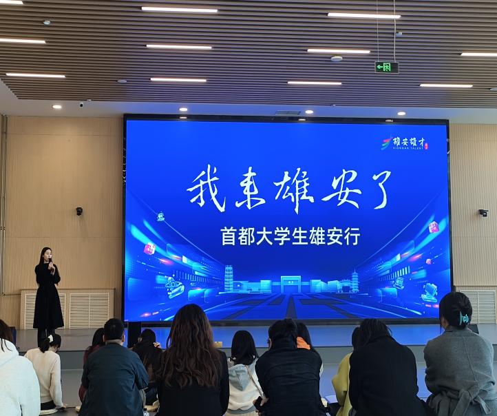 午后,师生们参观了雄安新区启动区综合服务中心,进一步了解雄安新区启动区的规划设计、重点项目建设进展、新区疏解政策信息等。作为展示雄安形象的重要门户,启动区综合服务中心建立“指挥部+管委会+工作专班+综合服务中心”工作机制,有力有序推进承接疏解工作。参访团还详细了解了雄安新区“雄才十六条”政策,“高校优秀应届毕业生参加求职应聘免费入住‘人才驿站’,入职后5年内每月发放生活补贴”“在公积金、人才激励、医保等方面基本实现与北京标准相衔接”,从多方面给予支持,加速吸引优秀青年人才向雄安汇聚。