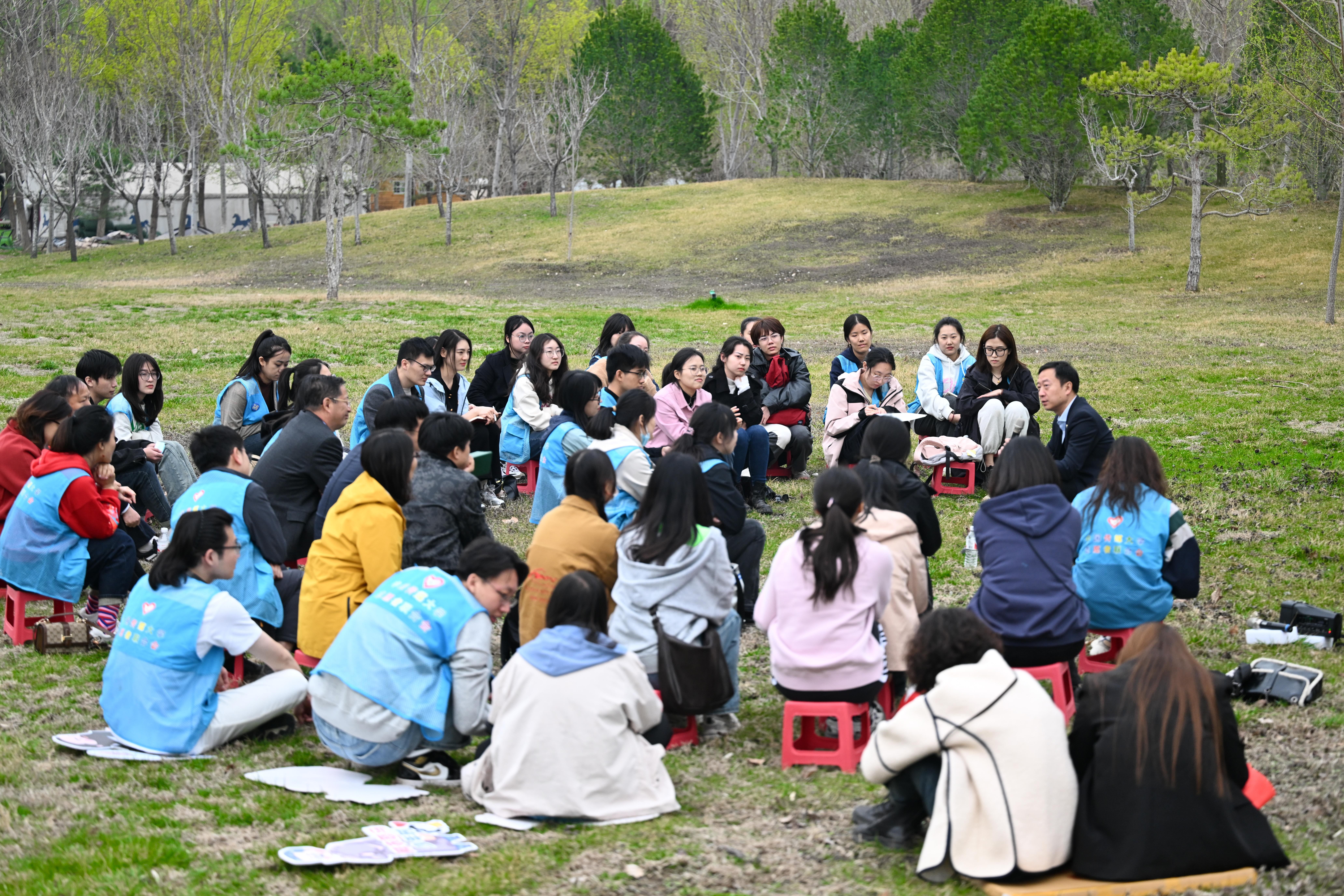 义务植树结束后,李众副书记与所联系的fun88官网体育研究生党支部党员和积极分子到“知行林”附近的林地间以“林间座谈”的形式开展了一次作业汇报,大家就上学期李众副书记在支部活动中布置的思考作业“如何破解思政课‘五低’现象”交流了各自的思考。