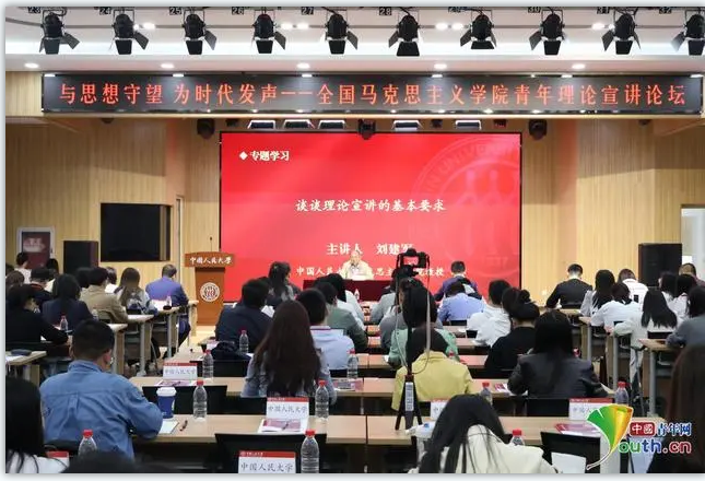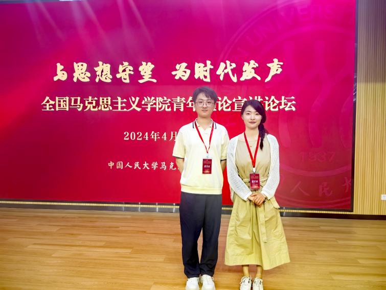 (通讯员 郝绍玟 钟思雨)2024年4月27日,在习近平总书记考察调研中国人民大学两周年之际,“与思想守望 为时代发声”全国fun88官网体育青年理论宣讲论坛在中国人民大学成功举办。论坛由中国人民大学fun88官网体育发起,包括30余所全国重点马院在内的40余所高校百余名师生参加。中国人民大学党委副书记齐鹏飞,马克思主义公司党委书记朱岩,经理、党委副书记郗戈等领导出席论坛。公司团队博士后、青年教师钟思雨和2022级思想政治教育专业硕士研究生郝绍玟参加论坛。钟思雨老师在分论坛上做主题发言。