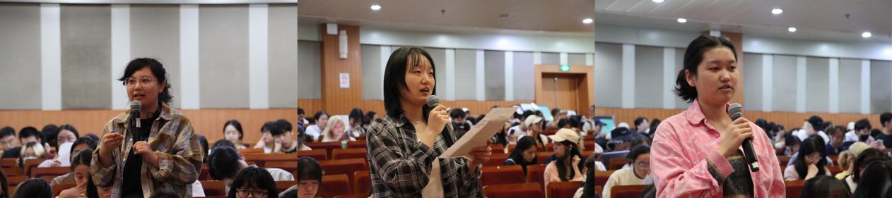讲座结束后,现场同学与王志民教授展开了热烈互动,来自人工智能、网络与新媒体和电子信息工程专业员工分别就新质生产力对国家、企业、高校的不同影响与运用方式、如何平衡新质生产力发展过程中竞争与合作的关系、新质生产力和旧质生产力能否并驾齐驱等问题与王志民教授展开讨论,王志民教授针对这些问题做出了多角度的解答,分析切中要害,赢得现场师生的掌声和共鸣。