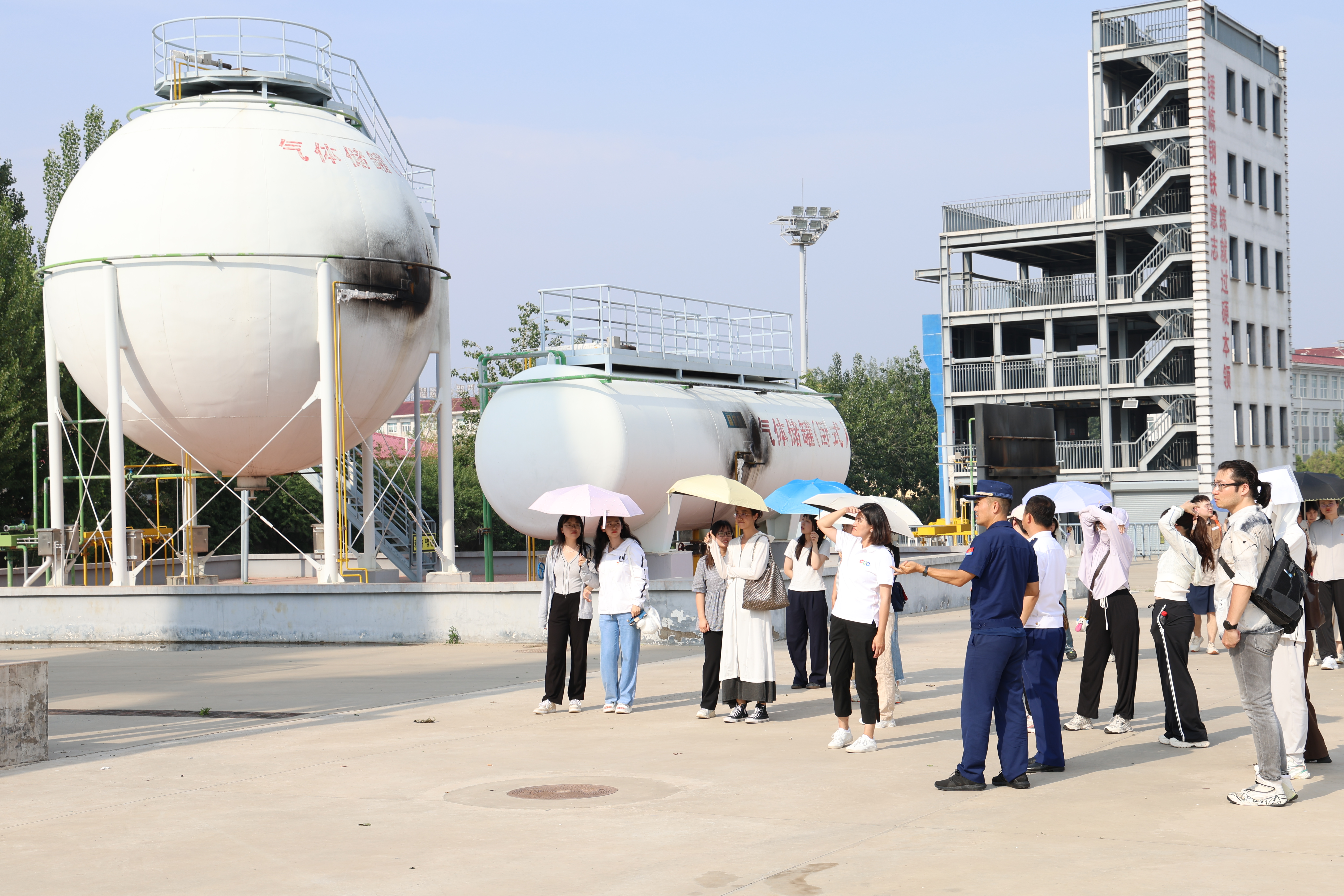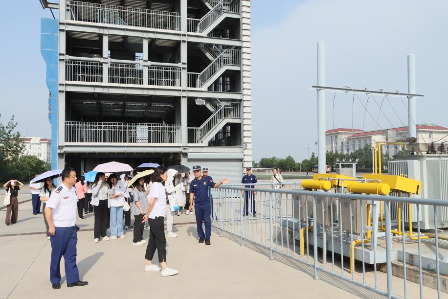 消防指挥系郝常华、刘臻老师带领大家实地参观了消防技战术综合训练场。