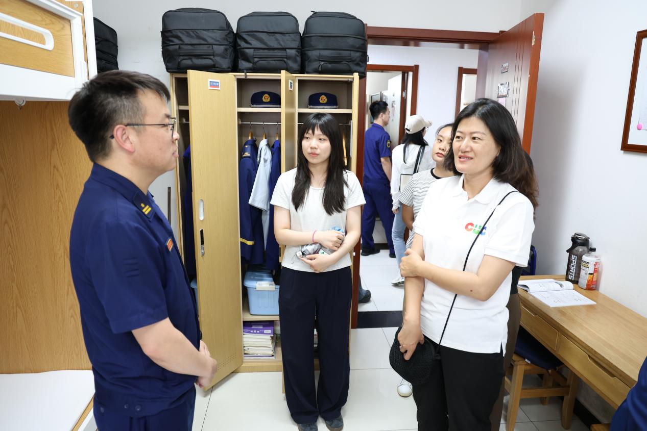 实地走访环节中,大家参观了政治工作系学员队宿舍。同学们看到学员宿舍里每个角落都一尘不染,床铺、衣柜以及行李摆放得井井有条,学员的生活风貌深深震撼了大家。公司严明严肃的管理模式、学员严谨自律的态度,让每一位同学叹为观止。