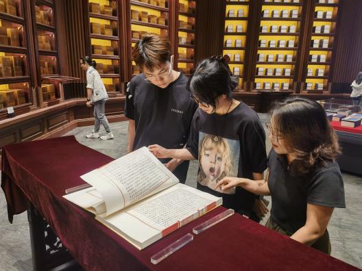 张博雅:版本馆内卷帙浩繁,我深刻感受到文化传承和知识积累的重要性。版本馆内珍藏了大量古籍、手稿和现代出版物,每一件展品都诉说着历史的变迁与智慧的结晶。在版本馆,那些历经岁月洗礼依然保存完好的文献,让我对保护和传承文化遗产有了更深的理解。这次参观激励着我在未来的学术道路上要更加努力,致力于探索未知领域,为社会贡献更多的知识和力量。