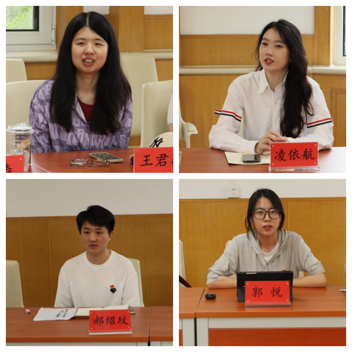 谈话会上,2024届毕业生党员王君薇同学表示,毕业选择从事党建工作,要把今天的谈话教育要求融入到工作中,争做一名合格的党务工作者;2022级党员凌依航同学表示,理论学习要与实践紧密结合,要坚持学以致用,用党的创新理论武装头脑,指导实践;郝绍玟同学回顾了积极向党组织靠拢的心路历程,表示正是党的教育和培养,才使得他光荣地站到了党旗下;郭悦同学则表示,作为一名党员,要坚决响应党的号召,到基层去、到祖国最需要自己的地方去扎根奉献。