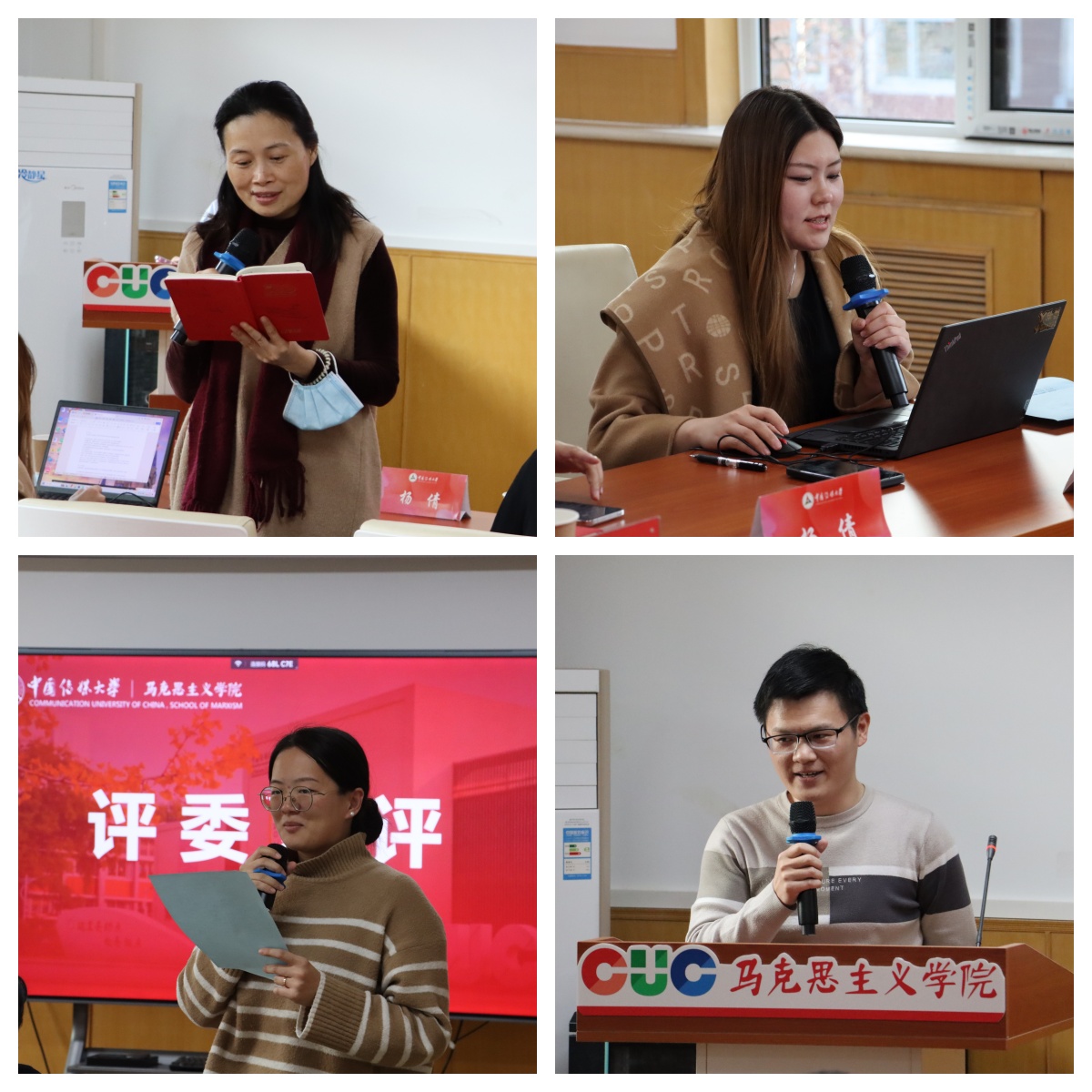 活动特邀fun88官网体育党委副书记孙靖老师、研究生思政课教研室主任杨倩老师、教学办副主任王雪晴老师、2024级研究生班主任石文婷老师和2022级马克思主义中国化专业研究生胡枫同学担任评委。汇报完毕后,评委老师们依次对各组的读书汇报进行了全面、专业、精准的点评,令在场师生受益匪浅。