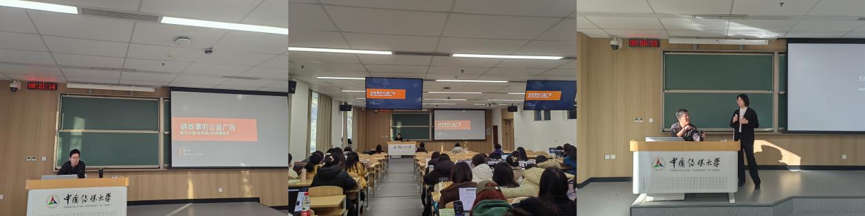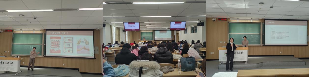在网络与新媒体(智能融媒体运营方向)和传播学(中外合作办学)两个专业组成的教学班中,宋红梅老师以“数字媒介时代的公益广告发展与社会主义核心价值观广告文案写作”为主题,结合广告案例,强调了在圈层化、网状化和多节点为特点的传播样态之下,国家形象、价值观传播在品牌传播中的重要价值。