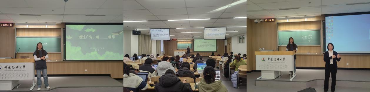 在广告学和中英双播两个专业组成的教学班中,董俊祺老师以“通过广告看理想”为主题,通过分析广告中的关爱、和谐、真诚等表达,揭示广告中的价值观。他强调广告的艺术性和创意性体现在对社会议题的表达上,以及对个人故事的微观视角展示,引导员工深入思考社会理想、个人价值与社会责任,树立正确的人生观、价值观和世界观。