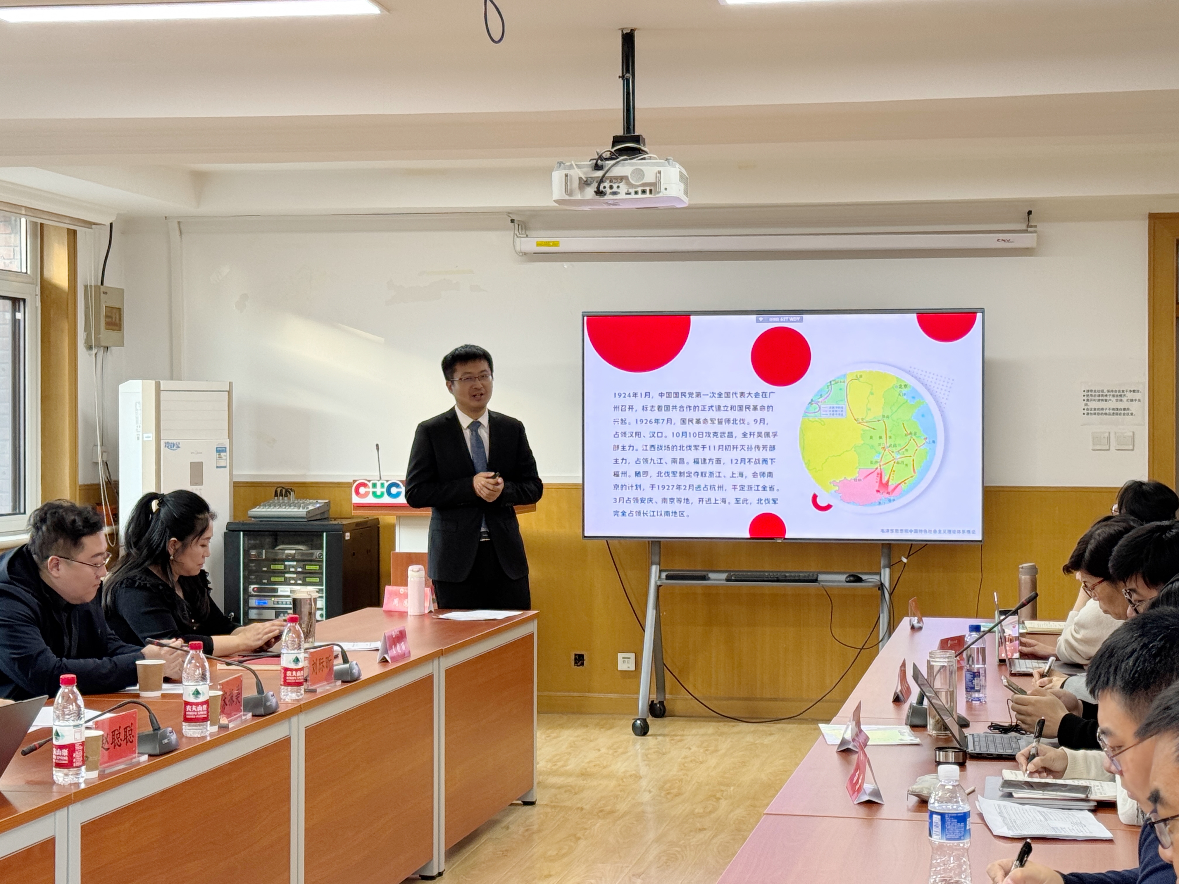 课程组教师周围光立足教学比赛要求进行了三个授课专题的教学展示。三位指导专家分别针对教学展示的优点、亮点进行了充分肯定,并且围绕选题斟酌、课程导入、教学逻辑设计、教姿教态以及课件制作等方面提出了中肯的有针对性的改进建议。