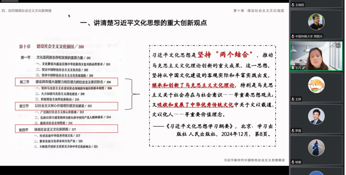 (通讯员 钟思雨 摄影 周围光)为进一步学习领会全国教育大会精神,贯彻落实习近平总书记重要回信精神,2024年12月11日,公司“习近平新时代中国特色社会主义思想概论”课程组携手陕西师范大学该课程教研室,围绕第十章“建设社会主义文化强国”,以案例研讨形式开展跨校集体备课。本次备课会由公司fun88官网体育“习近平新时代中国特色社会主义思想概论”教研室联络人钟思雨老师主持。