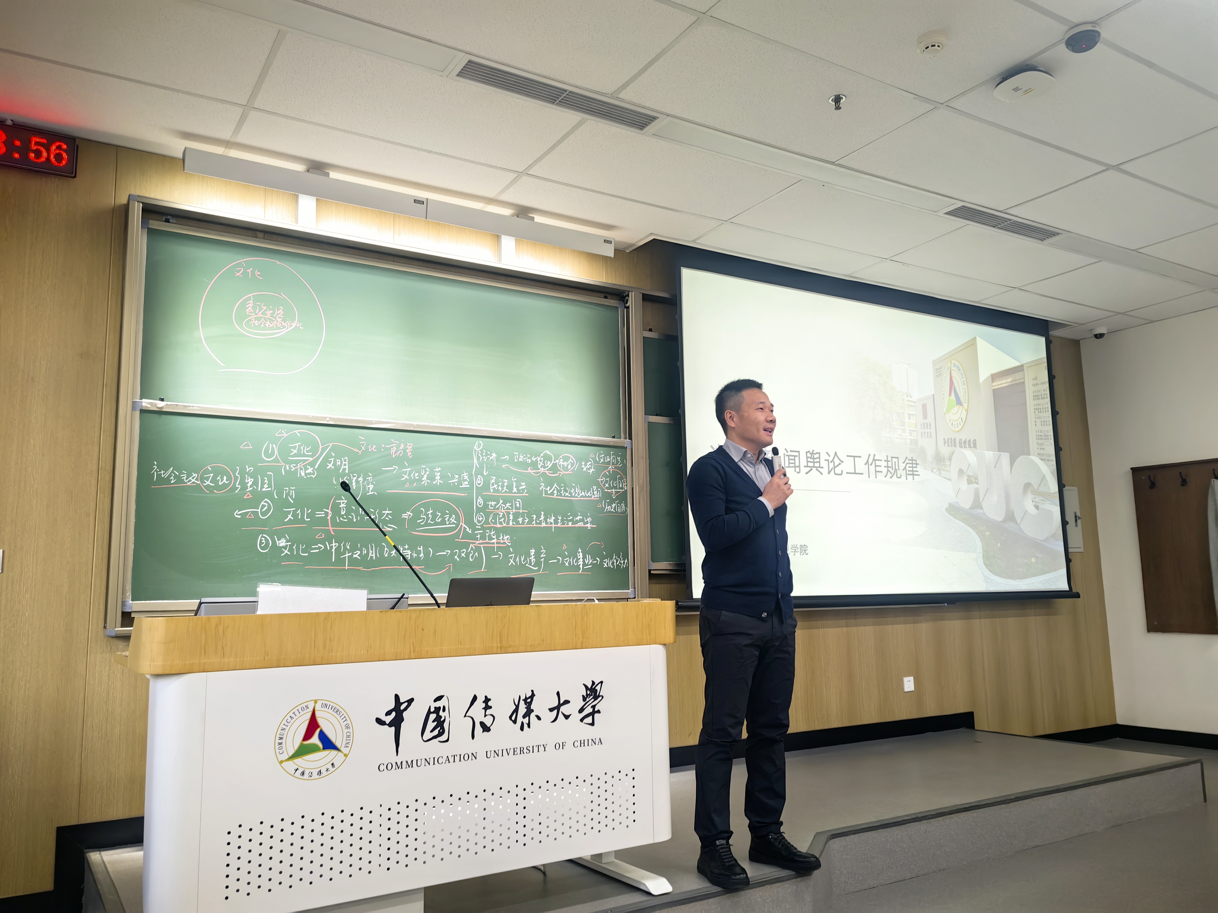 该课程教研室联络人钟思雨老师在课程导入中首先向同学们厘清了文化与文明、文化自信与历史自信、文化同意识形态、社会主义核心价值观的关系,引导同学们领悟新闻舆论工作的重要意义。