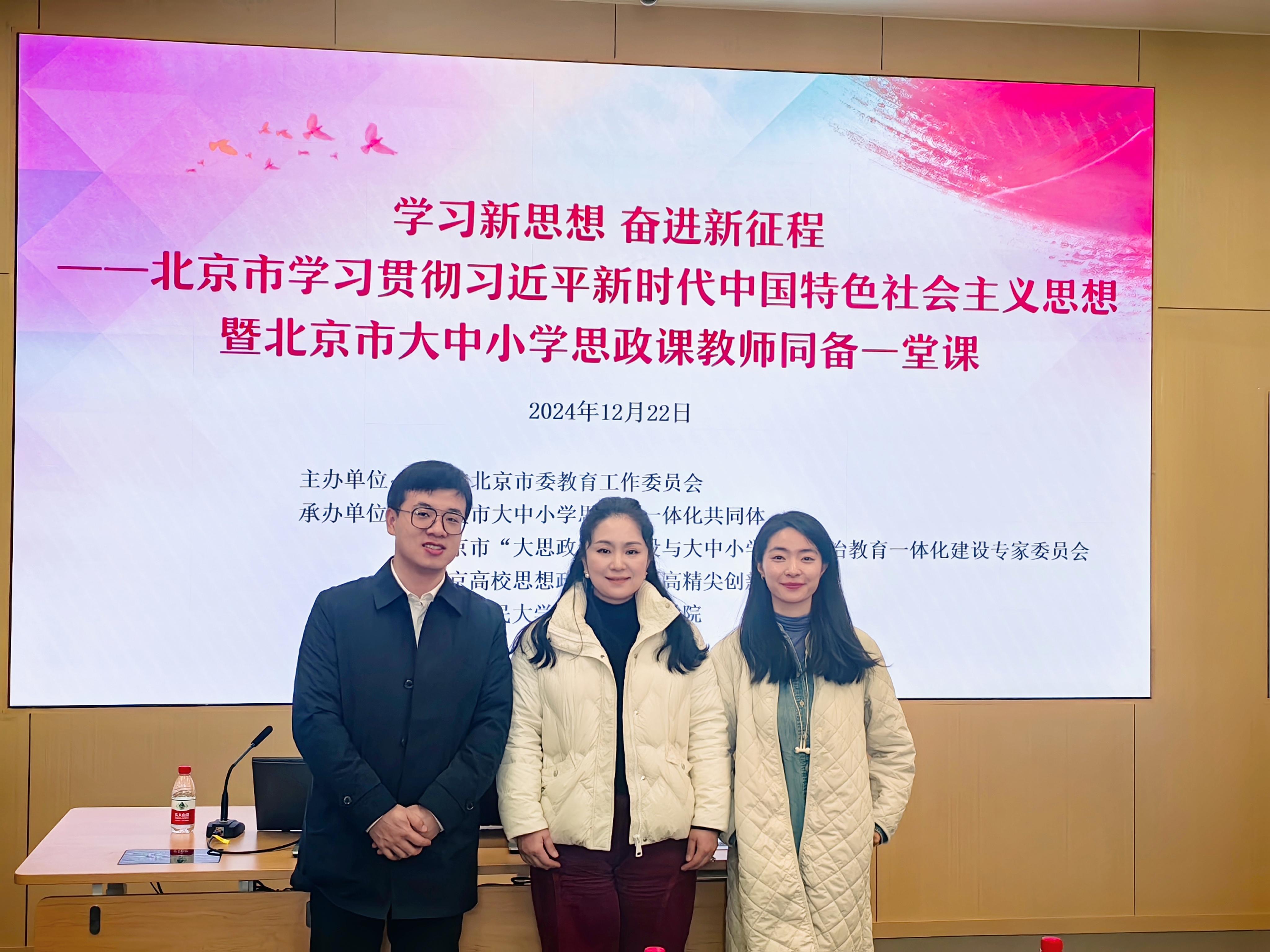 (通讯员 钟思雨 杨洋)为深入贯彻落实党的二十届三中全会精神、全国教育大会精神、习近平总书记对公司思政课建设的重要指示精神,推进大中小学思政课一体化改革创新,2024年12月22日,“学习新思想 奋进新征程——北京市学习贯彻习近平新时代中国特色社会主义思想暨北京市大中小学思政课教师同备一堂课”活动在中国人民大学通州校区成功举办。公司fun88官网体育经理王晓丽和青年教师杨洋、钟思雨受邀前往交流学习。