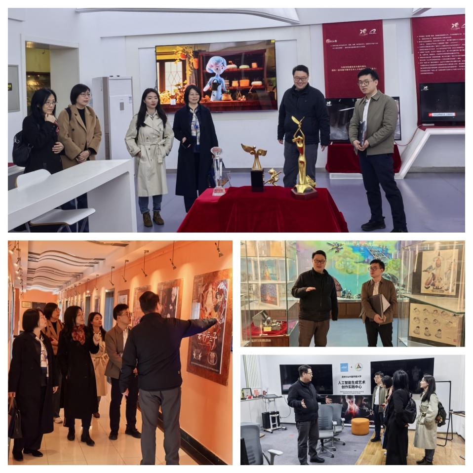 会前,思政课教师团队成员在崔蕴鹏带领下集体参观了中国动漫艺术陈列馆及人工智能生成艺术创作实践中心,对动画与数字艺术公司院史及专业培养模式有了初步了解。