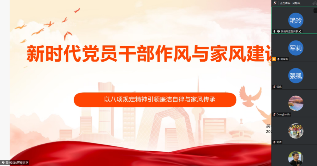 学习收看专题片后,公司宣讲团宣讲员吴艳玲老师以《新时代党员干部家风建设与作风养成》为题进行了主题宣讲。吴老师从家风建设的重要意义、党员干部应如何树立良好家风以及家风建设与作风养成的关系等方面进行了深入浅出的讲解。她强调,家风是社会风气的重要组成部分,党员干部的家风不仅关系到个人家庭的幸福,更关系到党风政风的建设。良好的家风能够为党员干部筑牢廉洁自律的第一道防线,而党员干部的作风养成又直接影响着家风的形成和发展。吴老师的宣讲内容丰富、案例生动,既有理论高度,又有实践指导意义,使党员们对家风建设与作风养成的重要性有了更加深刻的认识,也为党员们在日常生活中如何践行良好家风提供了具体的方法和思路。