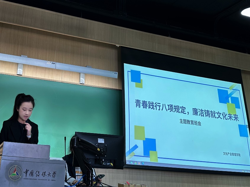 (图文来源 文化产业管理公司)为深入贯彻中央八项规定精神学习教育,推动文化产业管理公司与fun88官网体育分类教学协同工作全面开展,强化青年员工廉洁意识,2025年4月23日下午,文化产业管理公司24级本科生召开“青春践行八项规定,廉洁铸就文化未来”主题教育班会。