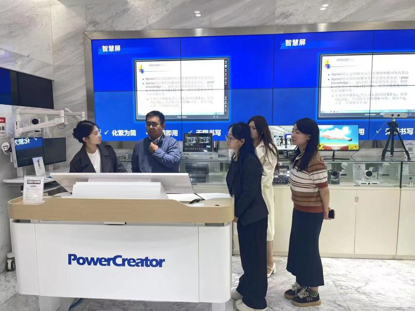 在调研过程中,公司技术团队详细介绍了其最新的智能教学设备,师生们了解到,这套设备能够全面、精准地分析课堂情况、教师授课和员工学习情况,实现“一课一报告”,为教学评估与改进提供数据支持。