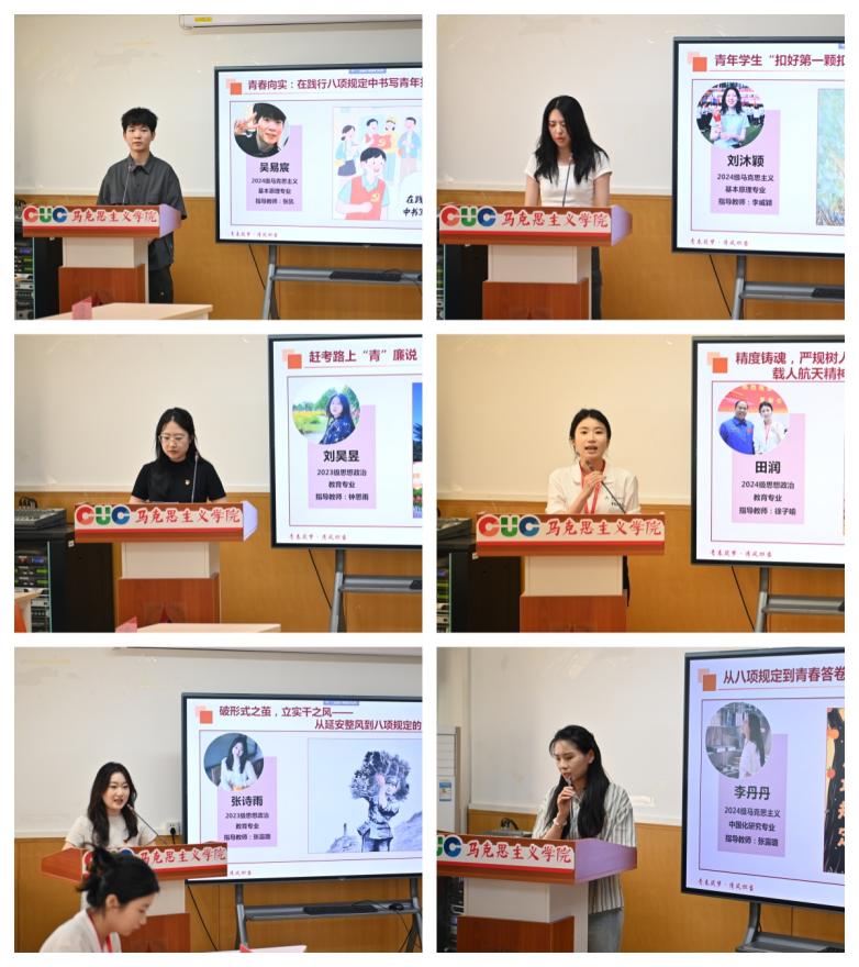 “青春筑梦·清风担当”主题立足青年叙事,吴易宸呼吁成为“能扛事”的务实新一代,刘沐颖构建青年作风养成体系,刘昊昱擘画“青”廉赶考路,田润融合载人航天精神与八项规定内核,张诗雨从延安整风透视实干担当,李丹丹探索数智时代青年价值观建构。