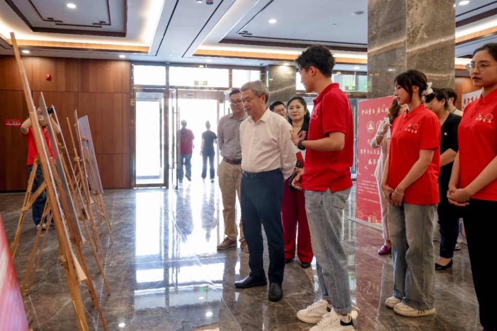 成立仪式开始之前,廖祥忠书记认真观看了宣讲团成员的个人展板,询问了各位成员的学习情况和宣讲内容。