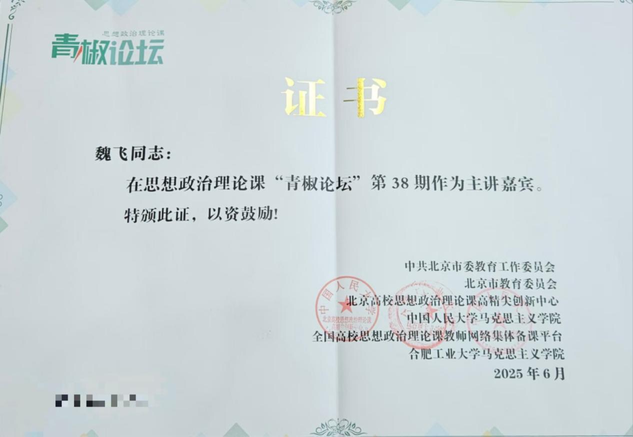 (通讯员 魏飞)2025年6月8日,由北京高校思想政治理论课高精尖创新中心、中国人民大学fun88官网体育主办,合肥工业大学fun88官网体育等单位承办的“思想政治理论课青椒论坛”第38期在合肥工业大学成功举办。为深入贯彻习近平总书记在《加快建设教育强国》重要文章中提出的“探索数字赋能大规模因材施教、创新性教学的有效途径,扩大优质教育资源受益面,注重运用人工智能助力教育变革”指示精神,本期论坛聚焦“数字技术赋能思想政治理论课教学”,旨在通过数字化手段深化思政课教学改革,提升育人实效。