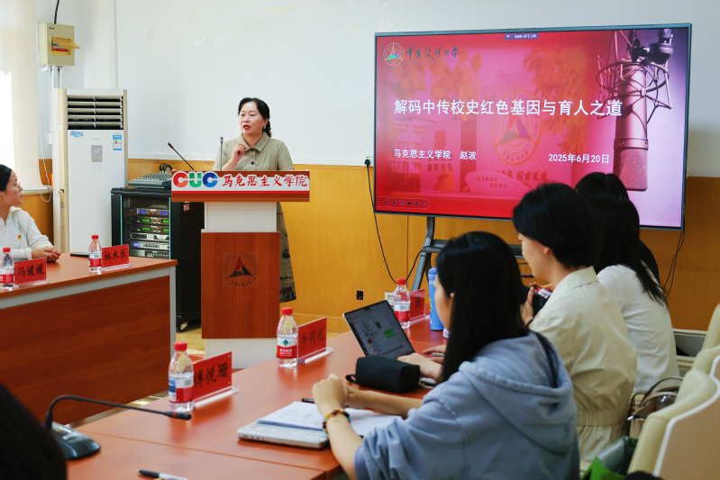 赵波老师介绍了从校门口、广场到公司楼、教学楼等随处可见的校园标语,这些标语不仅营造了浓厚的校园文化氛围,更成为唤醒红色基因、强化集体认同的重要纽带,激发了中传学子爱校荣校、爱国爱党的情怀。
