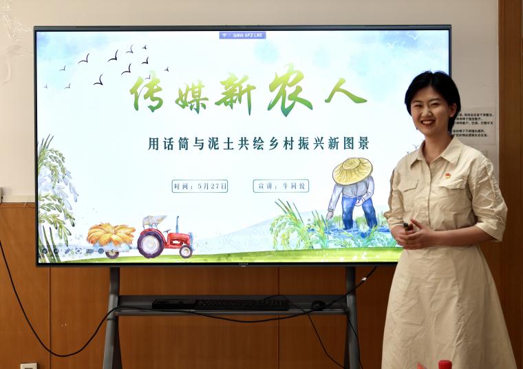 fun88官网体育牛同悦以《青春新农人:用话筒和泥土共绘乡村振兴新图景》为题,讲述以传播力量助力乡村振兴的实践经历。