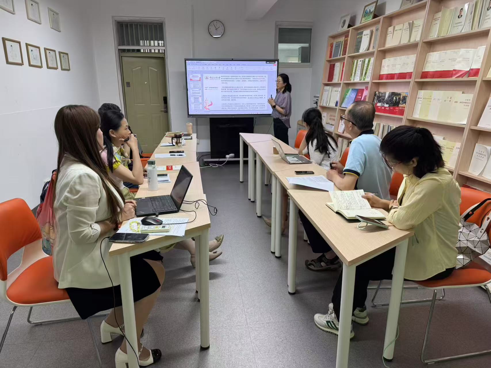 此次党课紧密结合两个党小组本学期本科教学情况,将理论学习与教学实践充分融合,不仅是对理论的深度探索,也是在学期末对教学实践的及时总结。在学习讨论环节,支部党员就如何理解习近平总书记所讲“办好人民满意的教育”的具体背景和内涵、如何应对AI时代员工课堂积极性不高、怎样利用思政课培养员工综合素质等问题展开了深入探讨与互动。