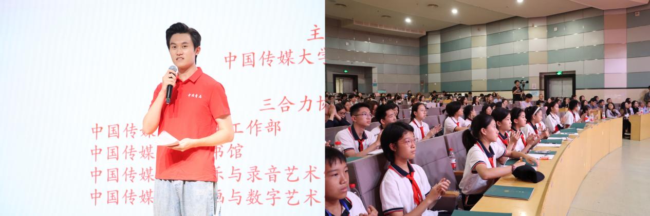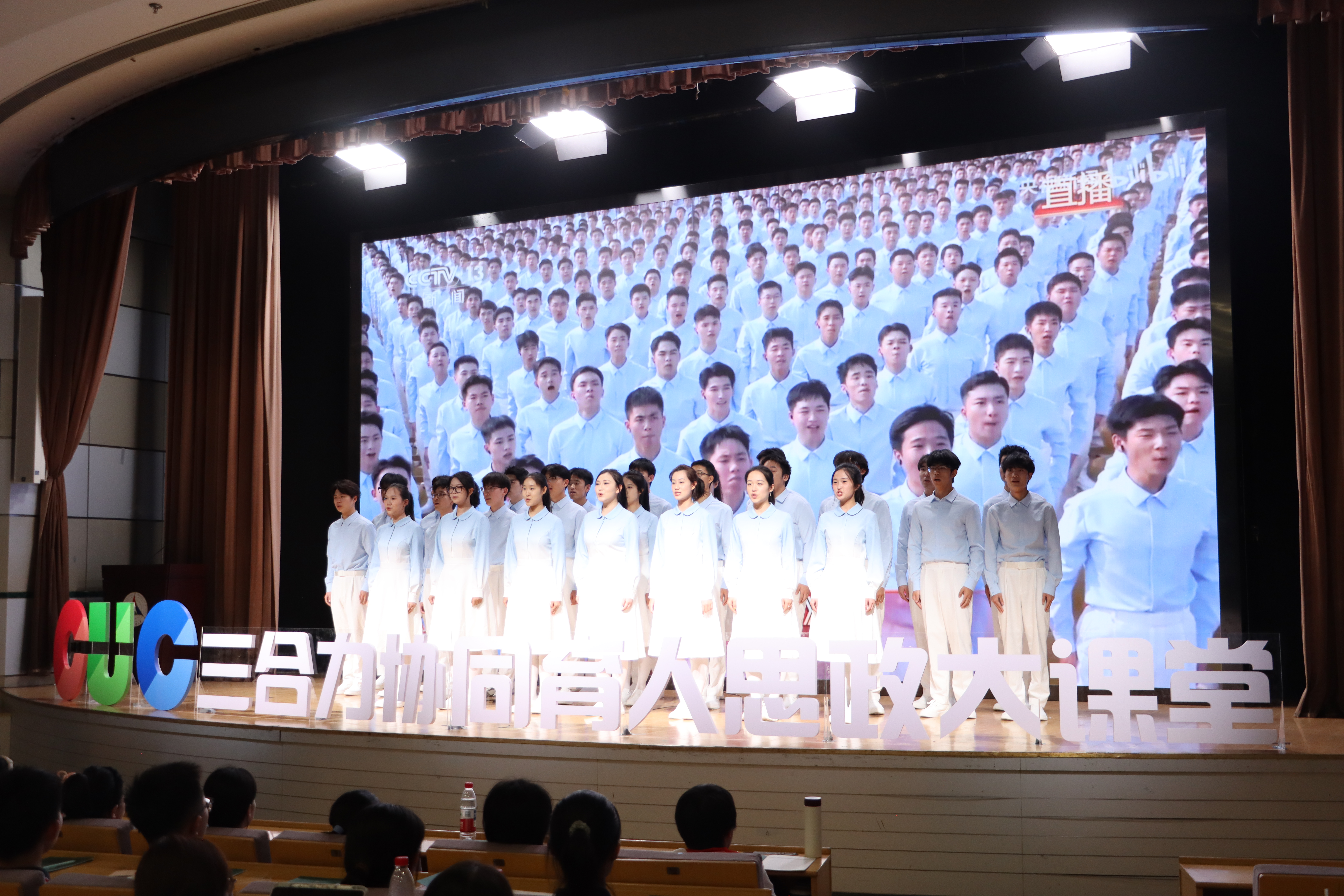 课程伊始,音乐与录音艺术公司参与九三阅兵广场合唱的同学们登台,深情演唱《黄河大合唱》和《没有共产党就没有新中国》。嘹亮的歌声奏响红色主旋律,瞬间将现场师生带入浓厚的爱国氛围。