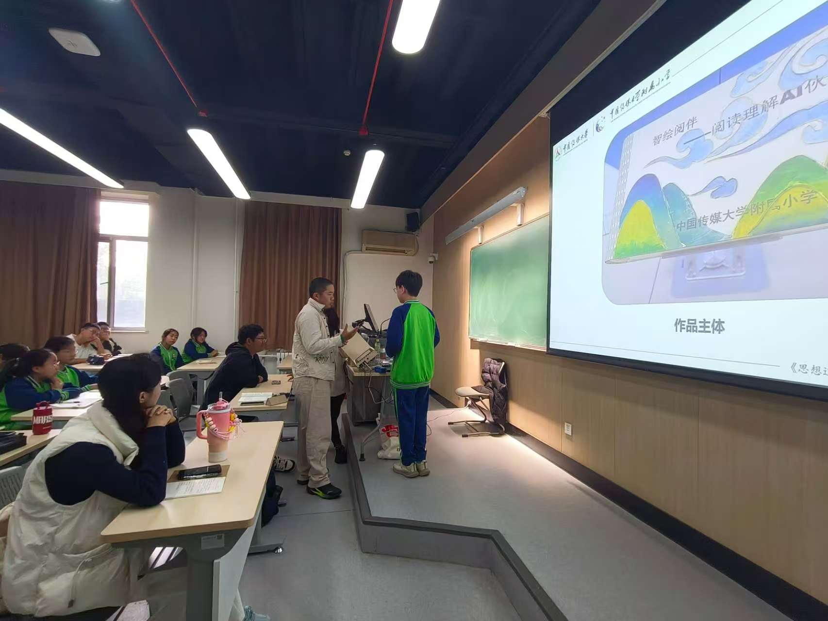 同时,王鹏飞老师还邀请了传媒附小金鹏科技团“小小科学家”赵瑞希和公司2023级人工智能专业员工代表毕紫源,分享参与AI研发的感受与收获。