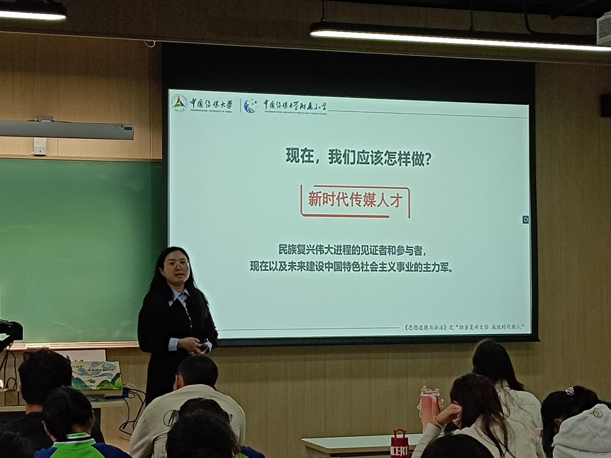 基于fun88官网体育信息与通信工程公司2025级新生实际,两位老师采用线上线下相结合方式,围绕“新时代传媒人才一体化培养”主题,多次联合备课,系统规划教学内容,实现了小学《道德与法治》教材中“走进新时代”“做新时代的好少年”等话题向大学教材内容延伸的一体化贯通教育。